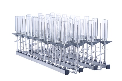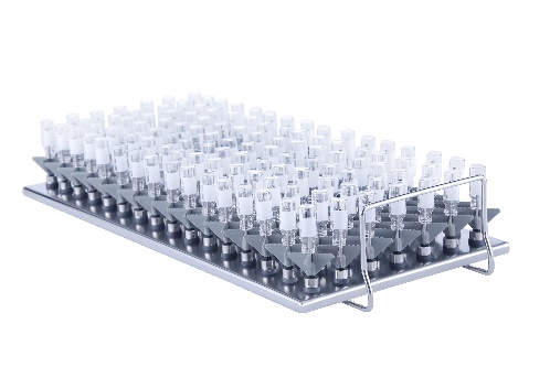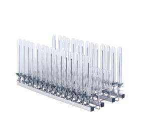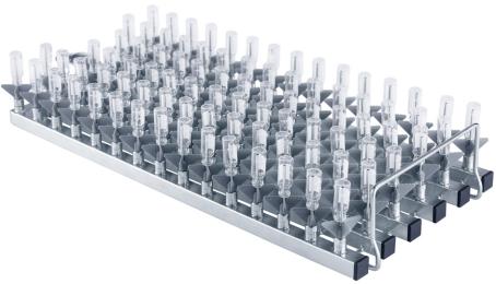 Module A415X1 4×15 (80 mm) • Convient à la verrerie de laboratoire telle que flacon headspace, tube à essai, tube colorimétrique, tube à centrifuger, flacons Céline, fioles jaugées, etc. • 30 × buses d'injecteur S401506B (H 150 mm) • 30 × buses d'injecteur S400800B (H 80 mm) • H 183, L 199, P 472 mm |