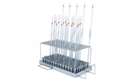 Module B098 98 • Convient pour les pipettes de mesure, pleines, etc. • Capacité : 98 pièces • Hauteur du cadre de maintien 150 mm • H 174, L 190, P 472 mm |