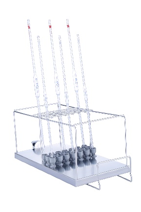 B021 21 Modules • Convient pour les pipettes de mesure, pleines, etc. • Capacité : 21 pièces • Hauteur du cadre de maintien 150 mm • H 174, L 190, P 472 mm |