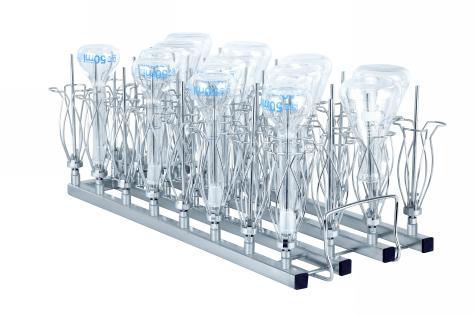 Module A306E 3×6 (150 mm) • Convient à la verrerie de laboratoire telle que flacon d'échantillonnage, flacons Erlenmeyer, flacons à fond rond, flacon en forme d'aubergine, flacon Schott, bécher, etc. • 18 × buses d'injecteur S601508E (H 150 mm) • H 183, L 184, P 472 mm |